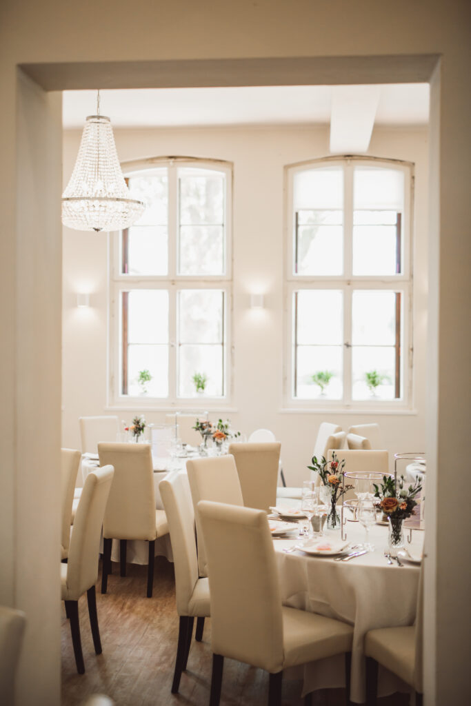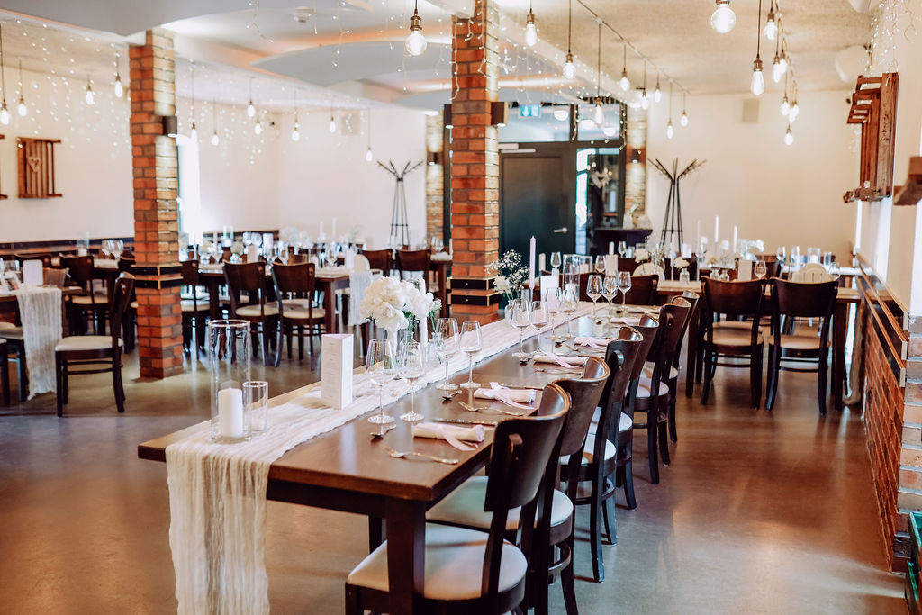 Unsere Hochzeitslocations bieten Platz für Gesellschaften zwischen 40 und 130 Gästen. Diese Größe eignet sich sowohl für kleinere Hochzeiten im familiären Rahmen als auch für größere Feiern mit Freunden und Familie.